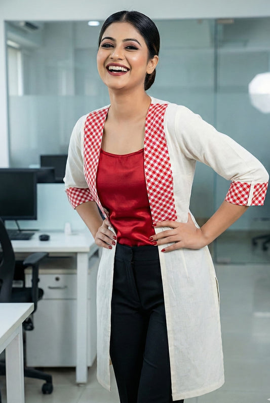 Baishakhi Special Red & White Cotton Designer Blouse | Traditional Ethnic Wear