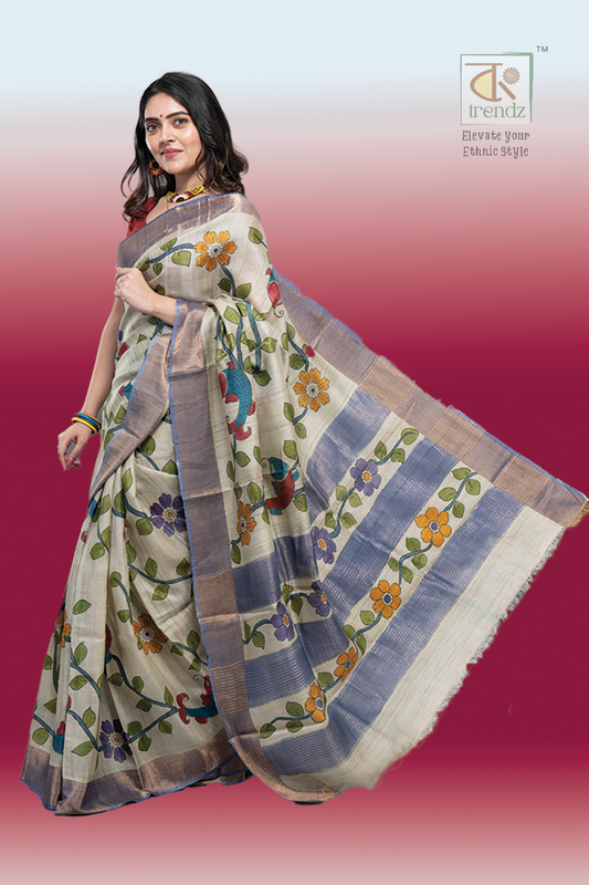 Pure Gachi Tassar Hand Paint Saree